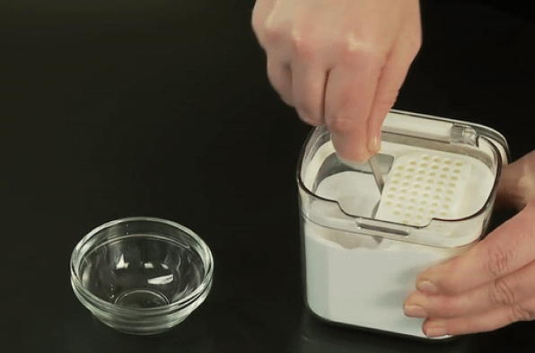 - Powdered Sugar Keeper with Removable Leveling Bar and Duster